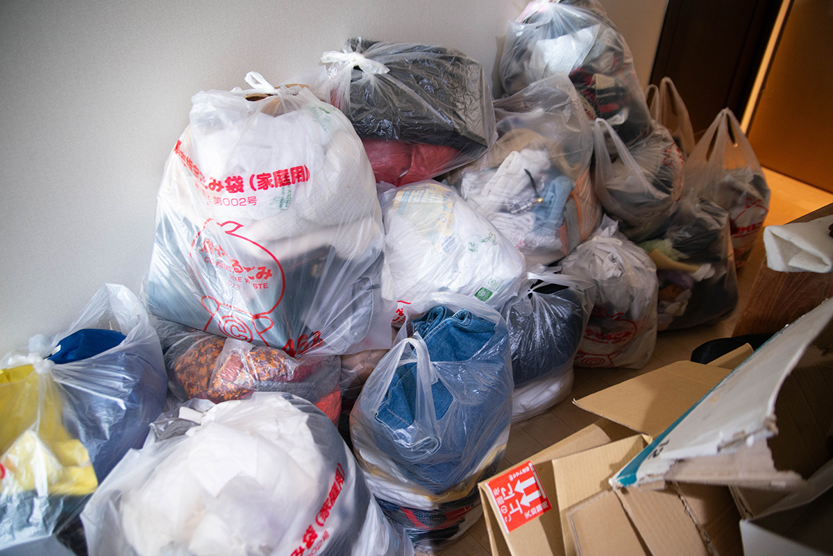 浦安のマンションで23 年。お子さんの独立後、夫婦で歩んできた80 代のHさんは、昨年から施設に入居された奥様を想い、現在独り暮らしを続けています。友人の勧めもあり「ベイサイドすまいる」の2時間・2名体制のお試しプランを依頼しました。主な依頼は、奥様の衣類や不用品の整理。次々と現れる思い出の品に「捨てるのは忍びないのでは?」と思う場面もありましたが、スタッフから「市の古着回収や国際支援への活用もできますよ」と提案され、納得して仕分けを進められました。