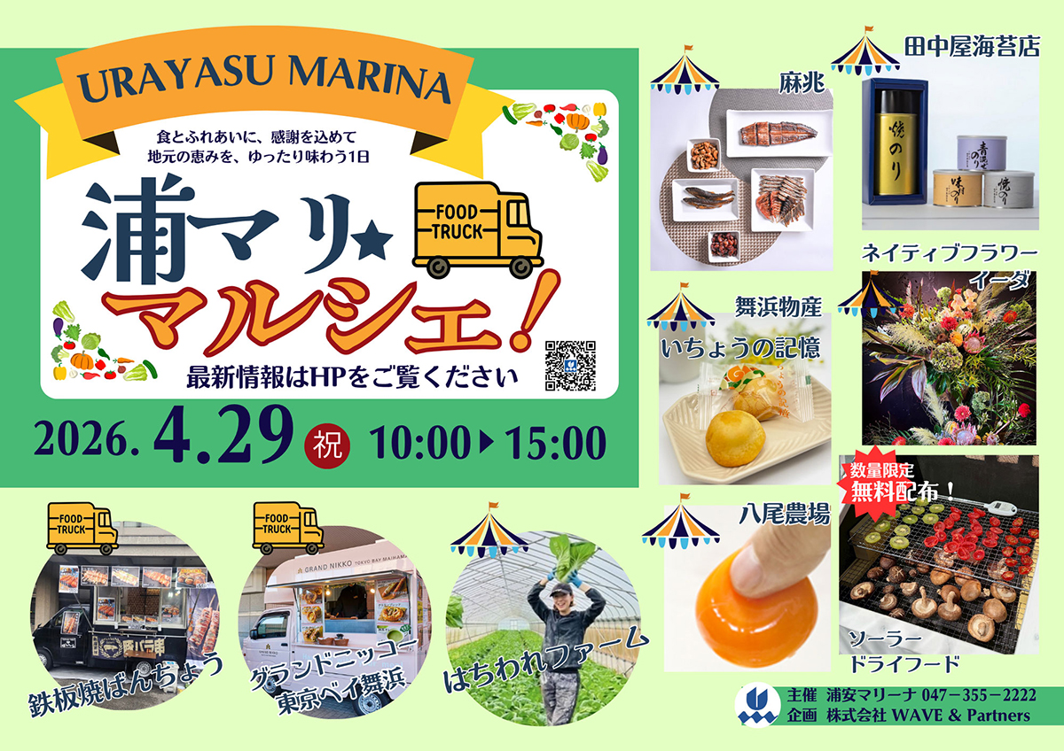 4/29(水祝)開催|浦マリ☆マルシェ! 浦安・千葉県の名産品などが大集合 @浦安マリーナ