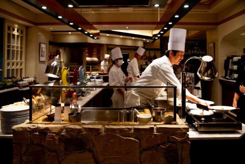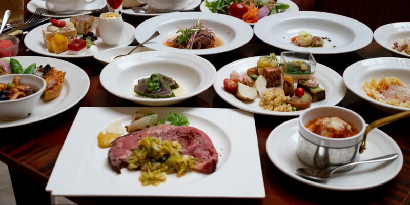 店内には活気あふれるライブキッチンが備わっており、名物の「伝統のローストビーフ」を目の前でカッティングしてもらえるなど、臨場感たっぷりの食体験が楽しめます。さらに、ホテルビュッフェでありながら本格的な「ピザ窯」を完備しているのも珍しいポイント! 焼き立てのピッツァや出来立てのお料理を心ゆくまで味わえる、まさに“ご褒美”にふさわしいレストランです。