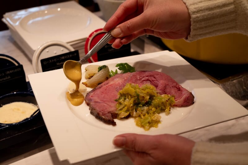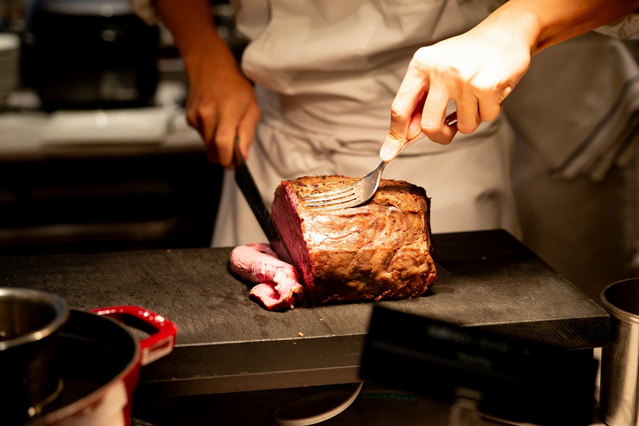 伝統のローストビーフが、GW限定でワンランク上の国産牛にグレードアップします!国産牛ならではのやわらかさと深い旨みを持ち、しっとりとした食感と肉本来の甘みが最大限に引き出された極上のお肉を、「春のキャベツソース」とともに存分にご堪能ください!