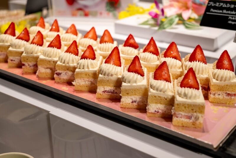 他にも、苺を中心に抹茶や桜など和の素材を取り入れた春らしいスイーツがずらり。筆者おススメ「プレミアムショートケーキ~苺と和三盆クリーム~」も、お見逃しなく!