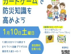 2026年最初の「うらしまあそびサロン」は、「カードゲーム×防災」です。ゲームを通じて、いざという時に役立つ防災知識を、遊びながら学ぶワークショップです。